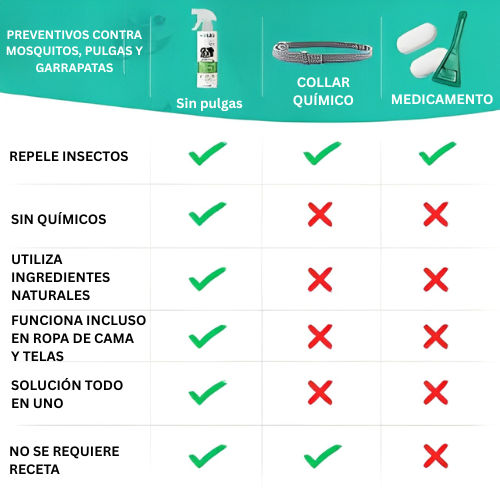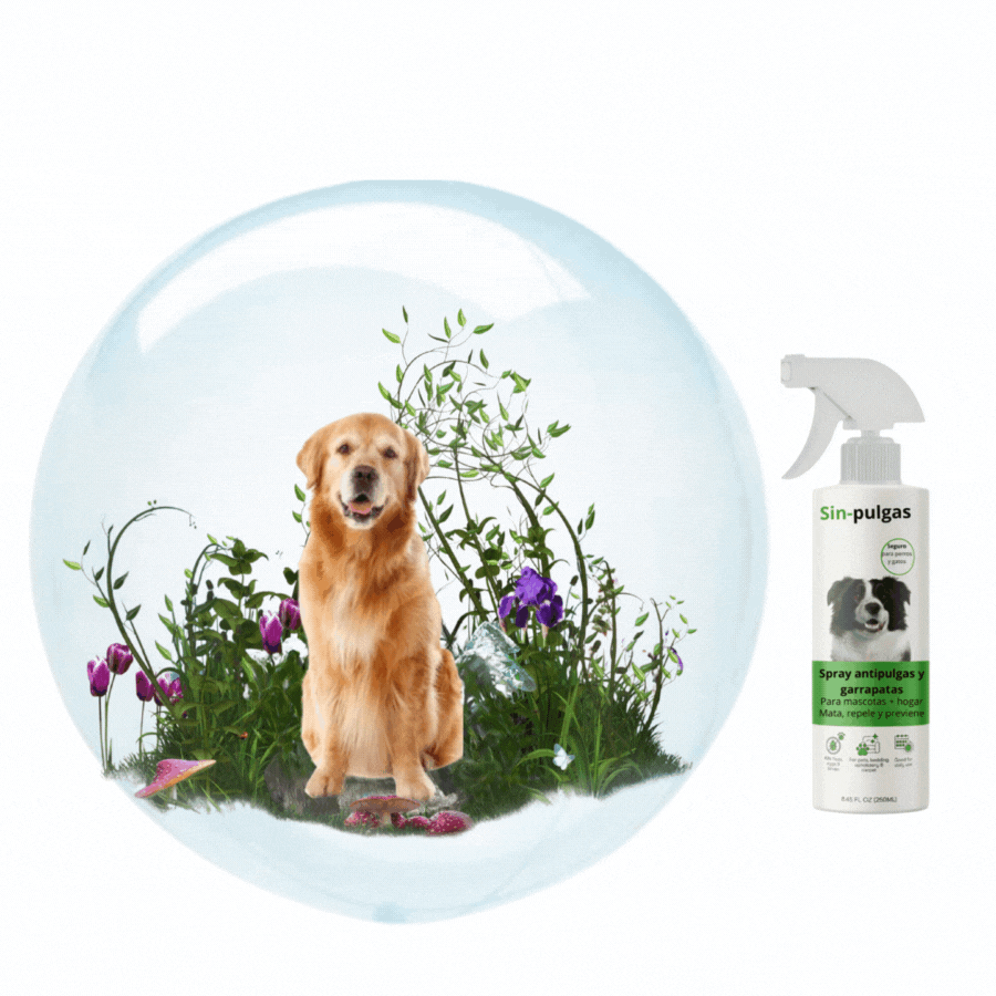Con el spray antipulgas y garrapatas de sin pulgas™ ya no tendrás que preocuparte por estos problemas de una vez por todas.